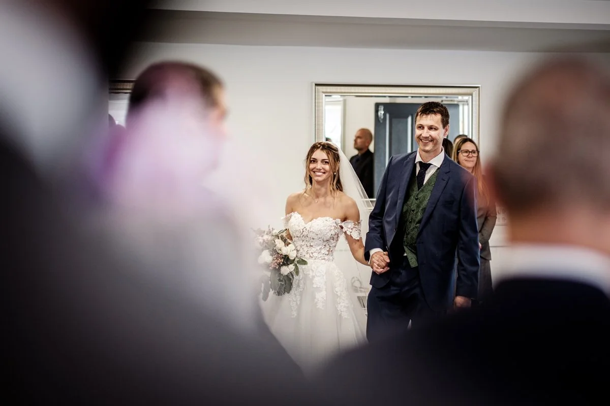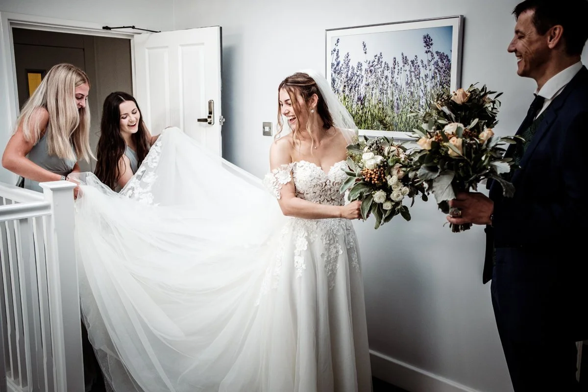 I shoot in a documentary style throughout the day and I candidly capture the moments that happen at a wedding by observing what happens without getting in the way. However I believe it is important to have a small amount of group portraits made of your closest family and friends. I love to get these where ever possible before the wedding breakfast.